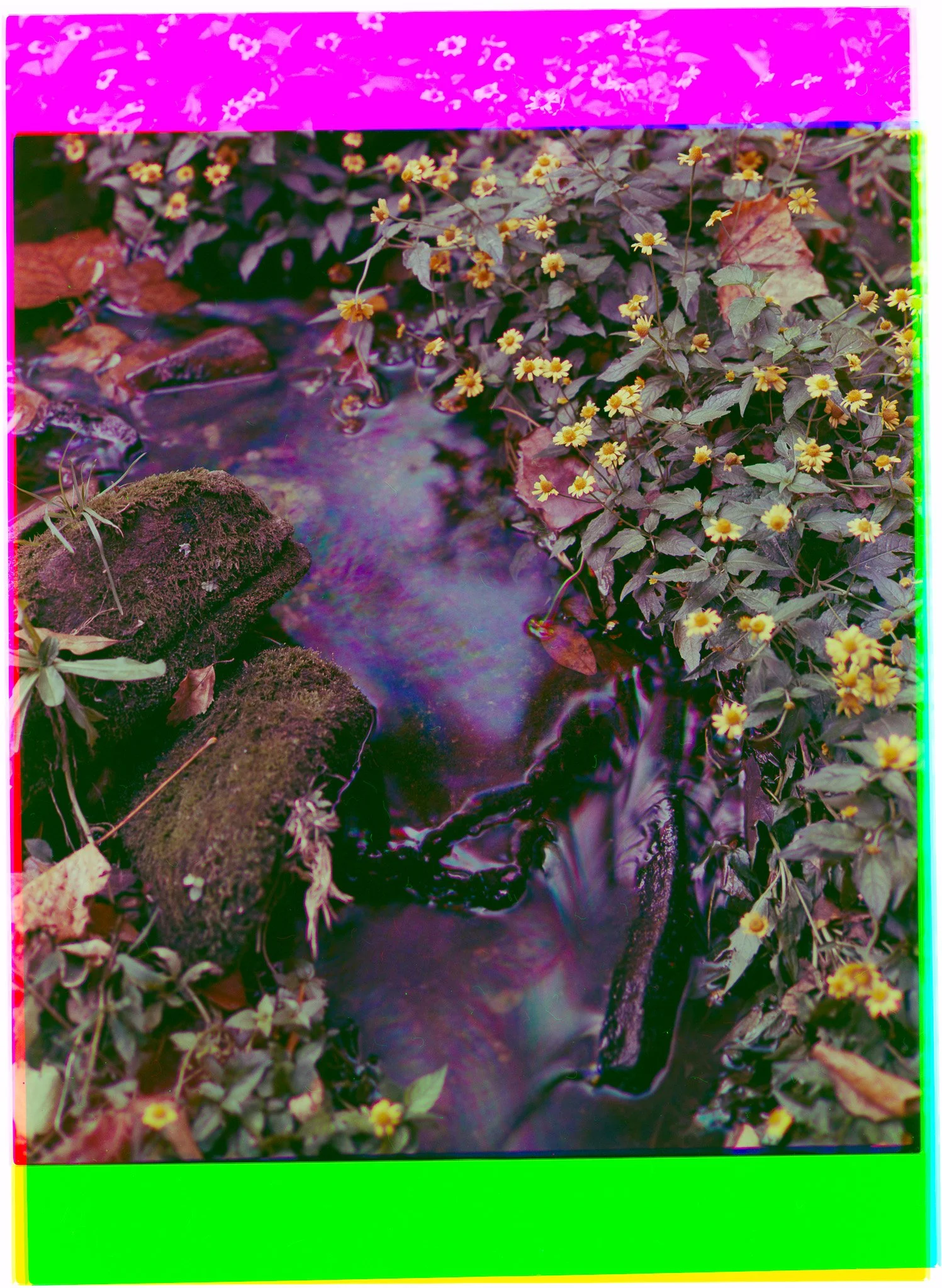 Trichromatic photographs taken using 4x5 film near creeks, rivers and bodies of water